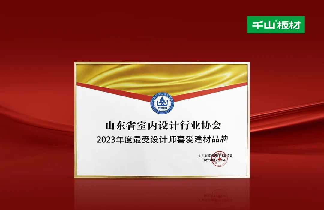 榮譽丨千山板材榮獲“2023年度最受設計師喜愛建材品牌”殊榮!